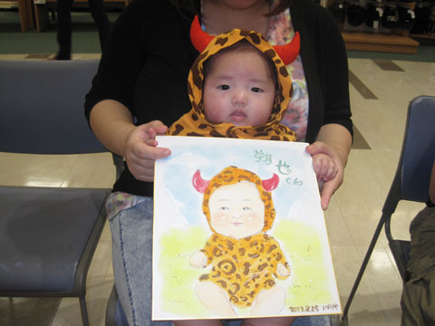 商業施設での似顔絵コーナーを開催。