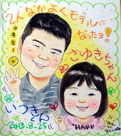 お子さんも大人もとっても素敵な似顔絵を描いて下さいます。
