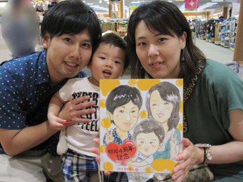 商業施設での似顔絵コーナーを開催。