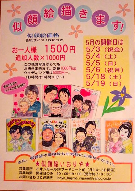 「似顔絵いおりや」で思い出の一枚を作って下さいね!!!