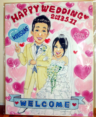 こちらはデザインやドレス、小物等かなり細かな製作になります。そのため通常の似顔絵よりも制作にお時間がかかります。(1時間30分程度)料金は5000円〜。