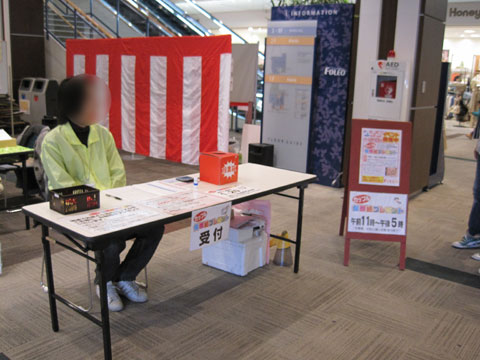 3Fフードコート前 10:00-19:00(受付終了18:30)になります。