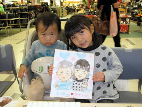 商業施設での似顔絵コーナーを開催。