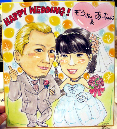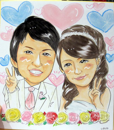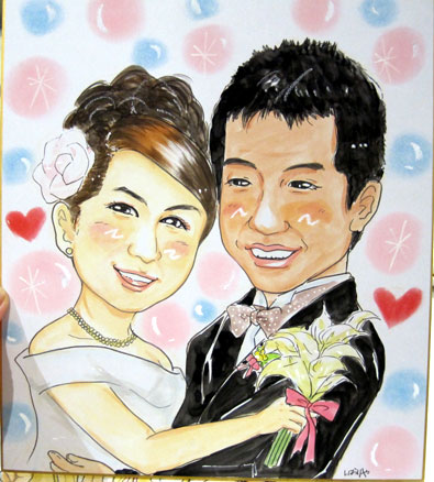 こちらはデザインやドレス、小物等かなり細かな製作になります。そのため通常の似顔絵よりも制作にお時間がかかります。(1時間30分程度)料金は5000円〜。