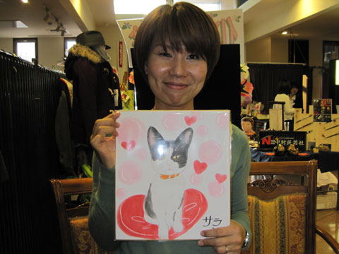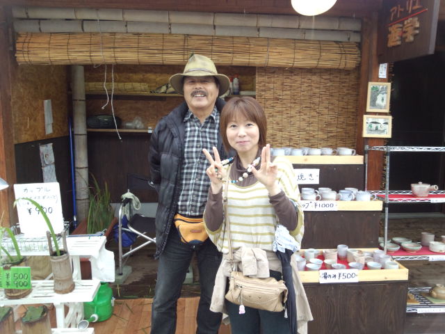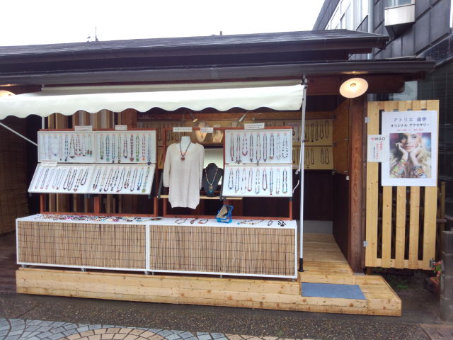 その他にも奥様の製作されたネックレスや小物、萩焼の焼き物など。なんと!橋本先生直筆の色紙が間で販売されてました。
