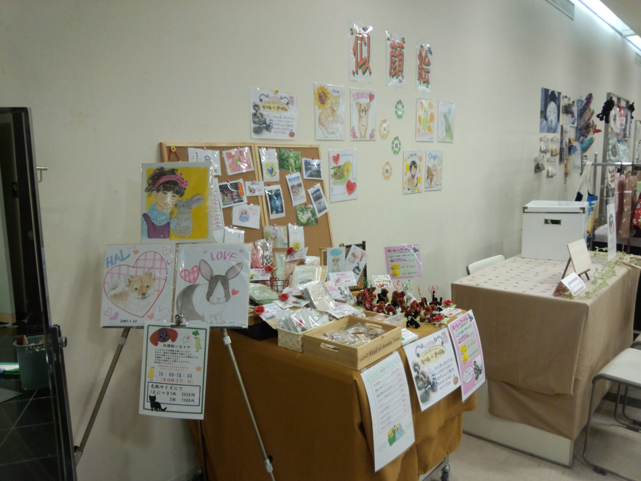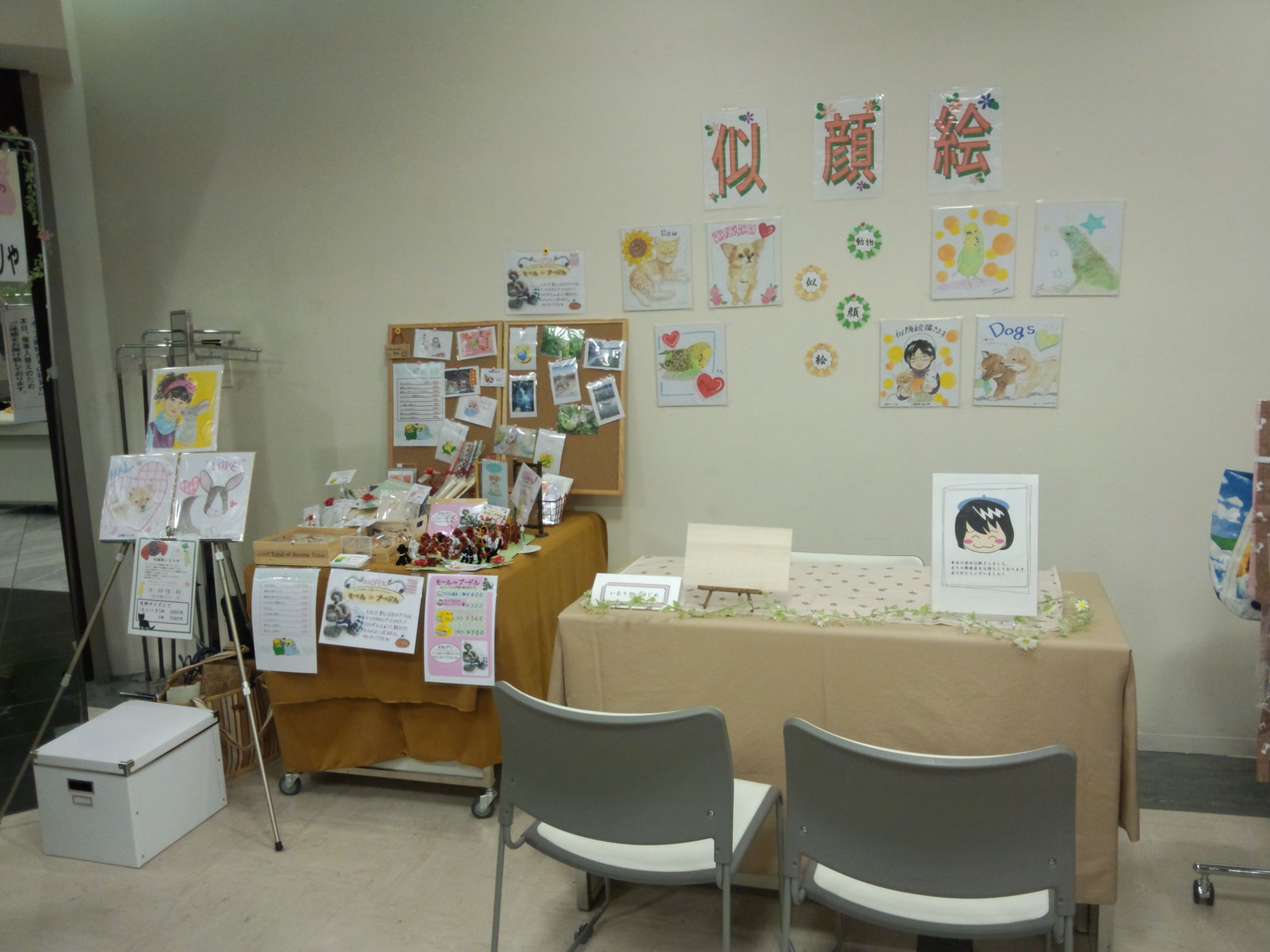 商業施設での似顔絵コーナーを開催。