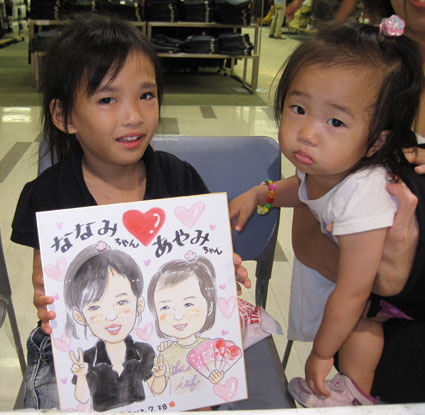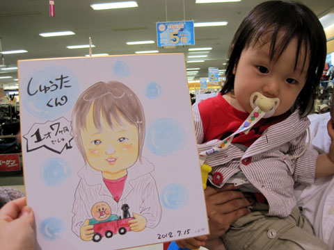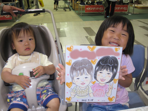 7月最後の似顔絵はイオンモール堺北花田でした。そして8月最初の似顔絵もイオンモール堺北花田。笑。夏休みが始まり、家族連れも多くなりました。