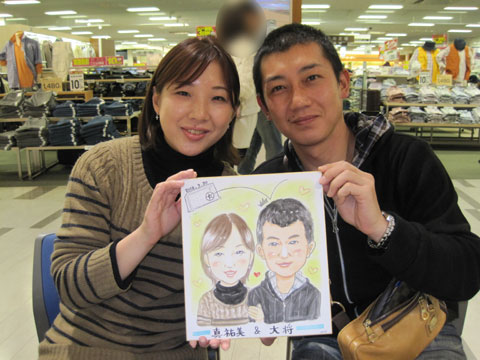 ショールーム出のお仕事。似顔絵師が数名おります。はがきサイズ 無料