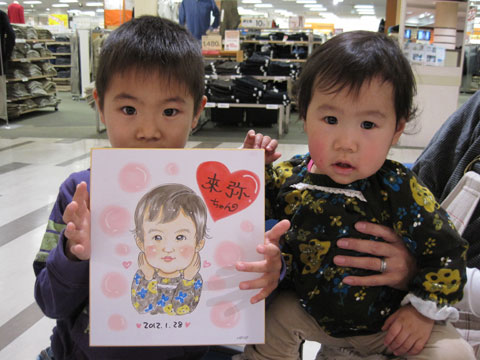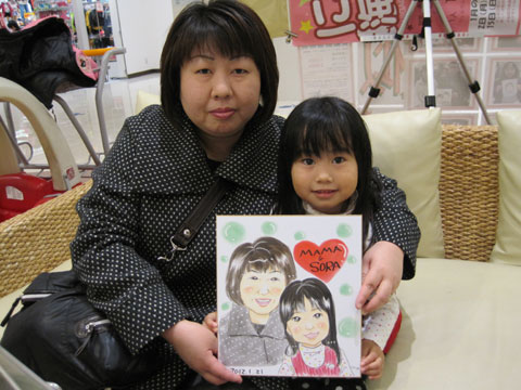 。とっても笑顔の素敵なお子さんと優しいお母さんとの似顔絵でした。