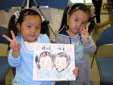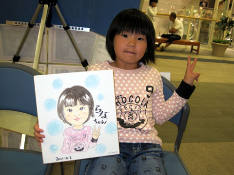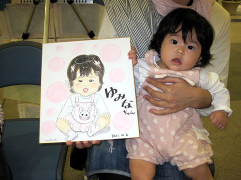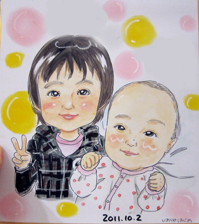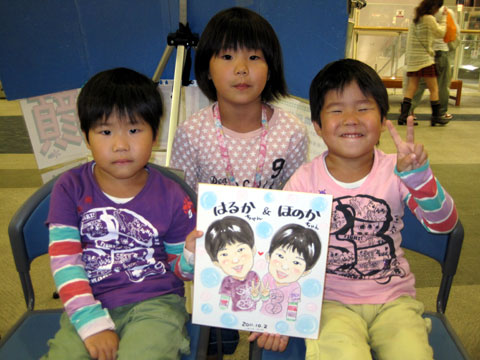 )。お姉ちゃんが描いてるのを見て、「描いて貰おうか〜」という話になって、急遽妹ちゃんズの似顔絵も。最後はお姉ちゃんも一緒にパチリ!姉妹仲良く大きくなってね〜。
