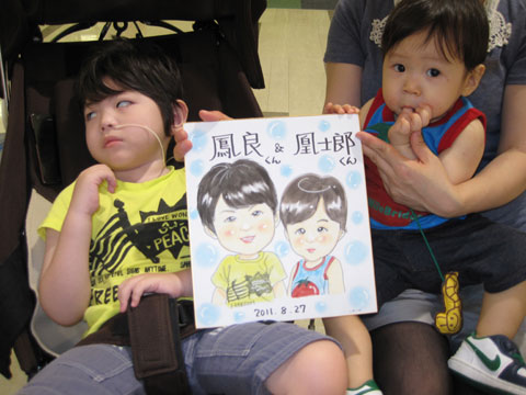 。お兄ちゃんのちょっと垂れた眉もつつきたくなっちゃうくらい可愛らしいです。仲良し兄弟ってことで仲良く手つなぎ似顔絵です。