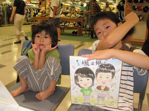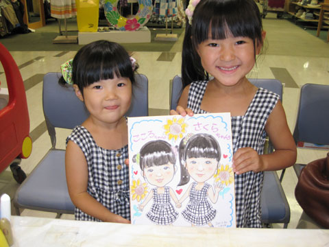 商業施設での似顔絵コーナーを開催。