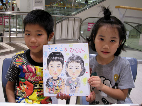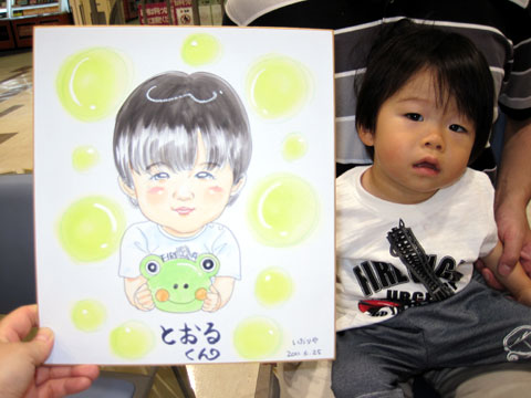 フードコート前はいつもよりイベントが多くて、いつもの場所よりもちょっとおくっちょにて似顔絵は営業中です。