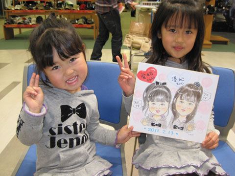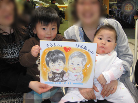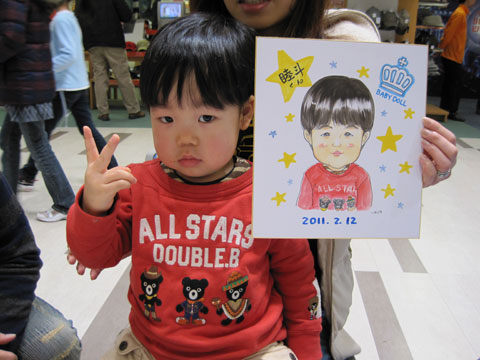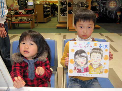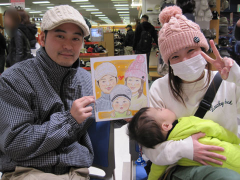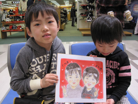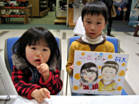 この二月の連休は、イオンモール堺北花田で似顔絵を描いてま〜す。