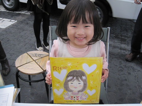 お客様も、2日目は雨の中にも関わらず、とってもたくさんの方がお越し下さいました。結構予約でいっぱいになってしまってお断りした方も多かったので、また機会があればぜひ空堀で似顔絵を描けたらいいなあと思います。