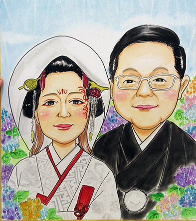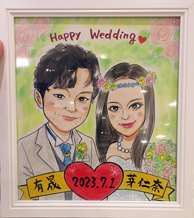 2人の記念にということで、 似顔絵を描かせていただきました!ありがとうございました〜。