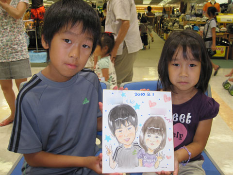 商業施設での似顔絵コーナーを開催。