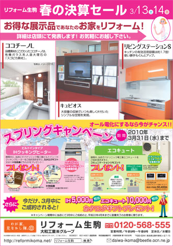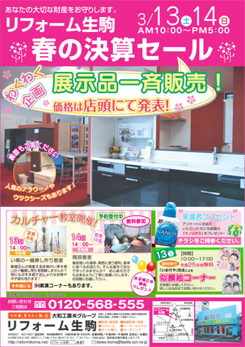 先日下見に行ってきました生駒の「リフォーム生駒」様のイベントのご案内です。
