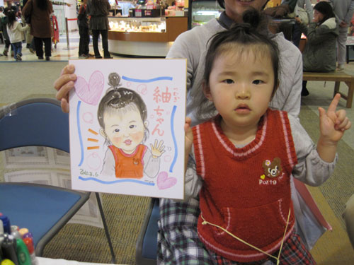 商業施設での似顔絵コーナーを開催。