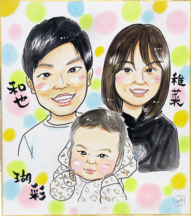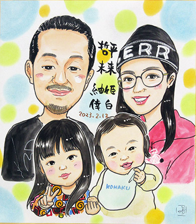 こちらかはご家族似顔絵です。以前ぽん太さんが担当して描かせていただきました。