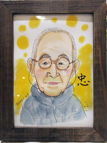 ふらりとお立ち寄りくださったお客様です。ロマンスグレーのおじさまで、ご家族から勧められての初めての似顔絵だそうです。これからも元気にお過ごしくださいね。
