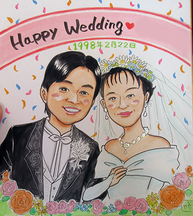 結婚記念の似顔絵とご家族の似顔絵、お母様との似顔絵のご依頼でした。どれも素敵なお写真から描かせていただき、描きながらとても素敵なご家族だな〜と感じながら描かせていただきました。これからも素敵な家族と一緒に、大切な時間をお過ごしくださいね。
