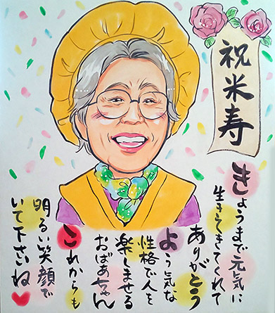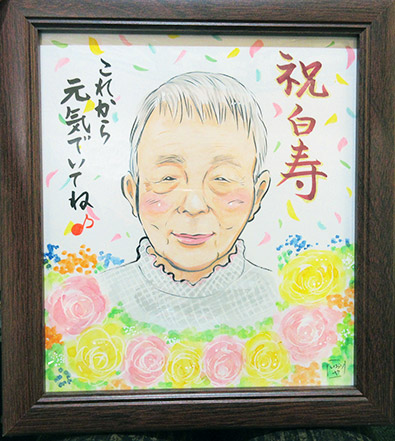 白寿99歳のお祝いの似顔絵です。もうすぐ100歳。おめでとうございます。