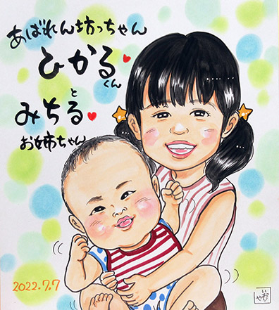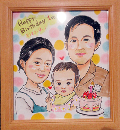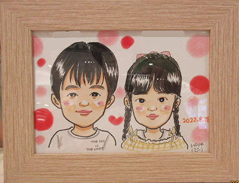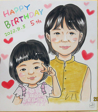親子での似顔絵です。お子さんのお誕生日記念に。