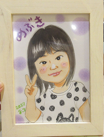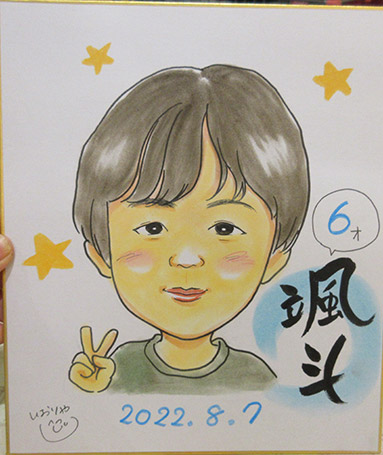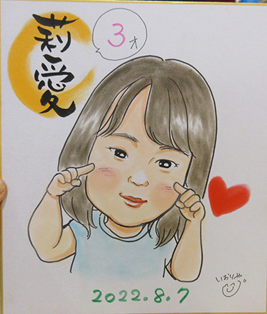 こちらは、3きょうだいの似顔絵です。今回企画した、小色紙サイズの似顔絵です。シンプルですが、ちょっとしたプレゼントにも喜ばれますよ〜。またのご来店もお待ちしております。