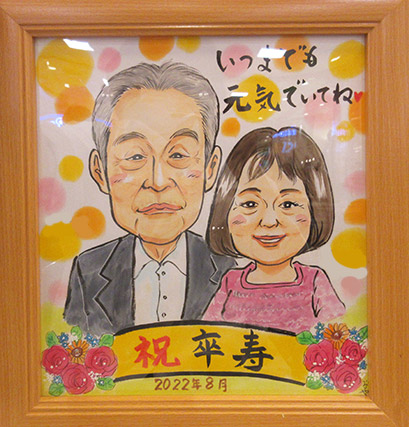 ご予約をいただいたお客様。お姉様夫妻のお祝い似顔絵をご依頼いただきました。