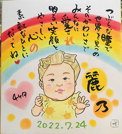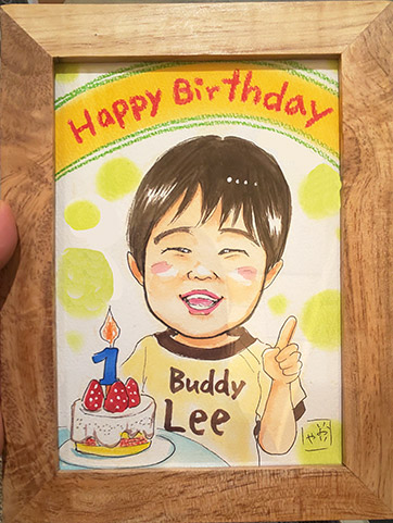 こちらはお誕生記念にというご依頼でした。初めての似顔絵だそうです。嬉しいですね。