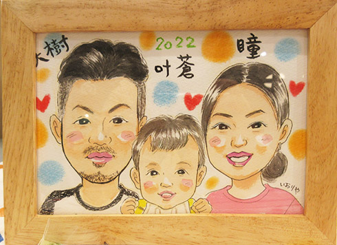 とっても可愛らしいお子さんとご家族の似顔絵を描かせていただきました!