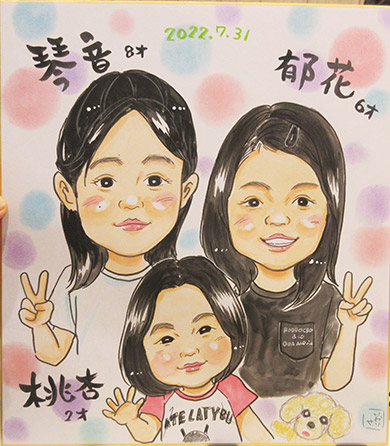 お子さんたちの似顔絵です。姉妹ちゃんたちはとっても可愛らしくてお利口さんでした。