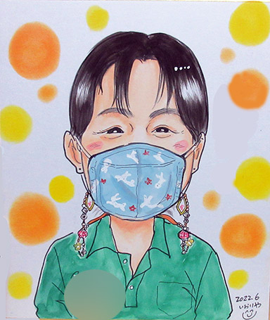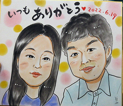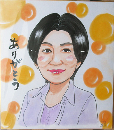 ご注文その1。リピーターのお客様のご依頼もの。元気で明るいお人柄の似顔絵を描かせていただきました。