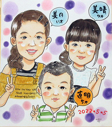 ちなみに、堺市内の方もしくは、近郊での似顔絵をお探しの場合、インターネットからのご注文であればお受けしております。どうしてもこの日にという方は、事前にご相談いただきスケジュールが合えばお描きすることもございます。ただしインターネット注文価格と同じになりますので、ご了承くださいね。