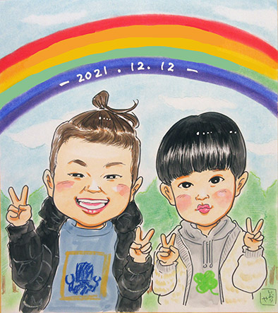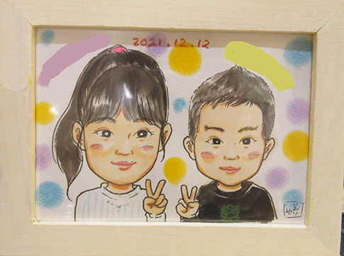 初めての似顔絵だそうです。とても可愛らしい姉弟ちゃんでした。