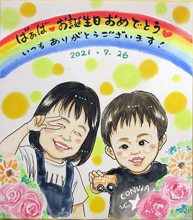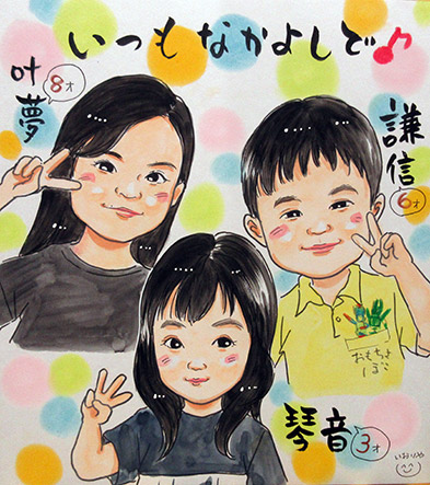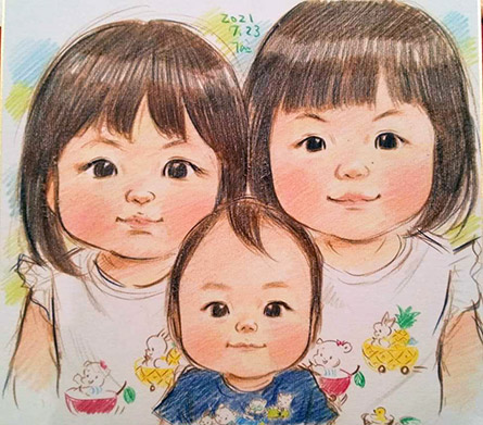 こちらも仲良し兄妹ちゃんたちのミニ似顔絵です。妹ちゃんの3歳ポーズがめちゃ可愛かったです!