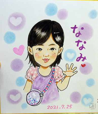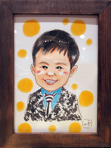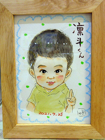 とってもおしゃれなお子ちゃまで、可愛らしい笑顔が微笑ましいお子さんでした。いろんなお話をしたのですが、初めての似顔絵で興味津々でみてくれました。最後にさよならするときは、お名前を聞かれて、ちょっとうるっとしてしまいました〜〜〜!
