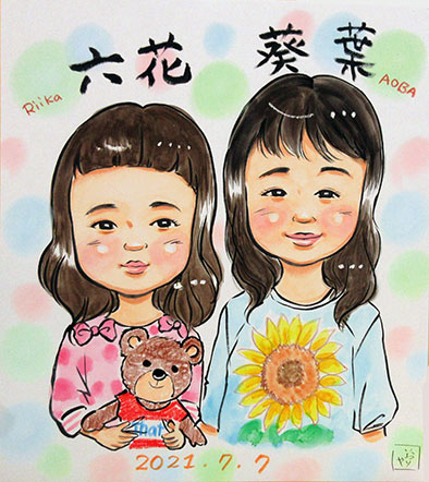 こちらは毎年子供の日の記念に描かせていただいてます。今年で10回目。全てコンプリートしているお姉ちゃんの成長がとてもよくわかる長いお付き合いのリピーター様です。去年も今年も子供の日が緊急事態宣言だったのですが、こうやってお描きできてよかったです!弟君はいよいよ恥ずかしがり屋さんに突入。来年もお待ちしてま〜す。