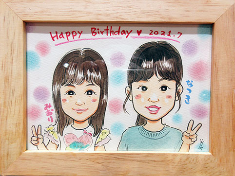 似顔絵は初めてなんです〜と、お二人でとても控えめにお越しくださいました。気になるお店を目指してご来店くださいました。是非また機会があればちょっと遠いですけれど、遊びにいらしてくださいね。