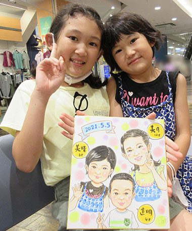 商業施設での似顔絵コーナーを開催。