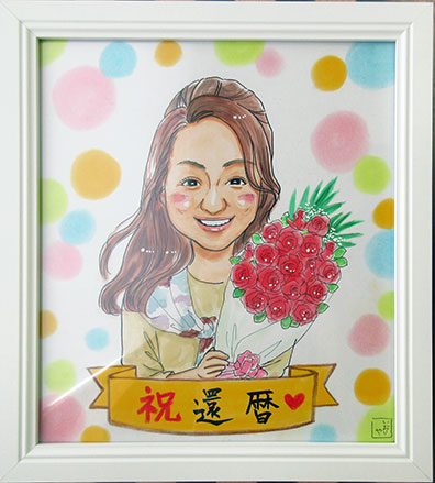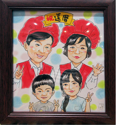 こちらは還暦のお祝いのご依頼でした〜。以前もご依頼をいただいまして、今回もリピートいただきました。ありがとうございました。描いた絵は朧げなんですが、お孫ちゃんの顔で思い出しました!さて、次に会う頃はどんな風に成長しているのか楽しみです。