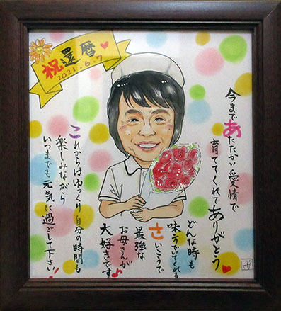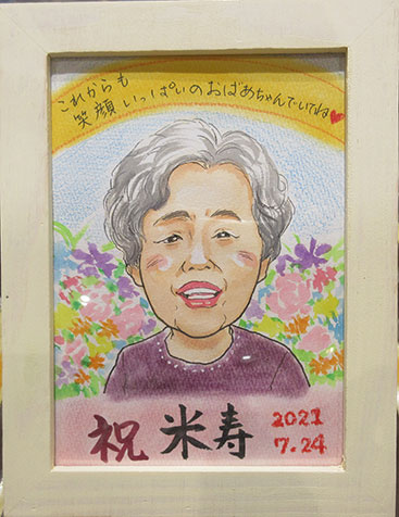 米寿のお祝いにと探してきてくださったご家族様。親子さんで色々と考えてご依頼くださいました。今回はミニ似顔絵でしたがちょっとしたスペースでも飾れるので、いいかもですね。ぜひ皆様の記念になる1日になりますように願っております。ありがとうございました。