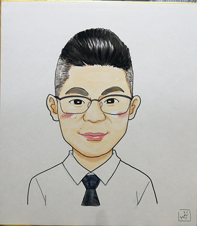 こちらは、お仕事でお使いになる似顔絵のご依頼でした。通常はあまりやらないのですが、SNSやWEBなど及び印刷関係でのご利用もできるデジタル仕様のご依頼です。