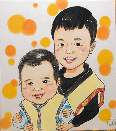 いつもはあべのキューズモールで描いてもらうそうですが、今回はいおりやが描かせていただきました。兄妹の仲良しさんで、会えないコロナ禍に次会えた時のプレゼントにというご依頼でした。なかなか会えないのは寂しいですが、ぜひ元気に会えることを願ってます。