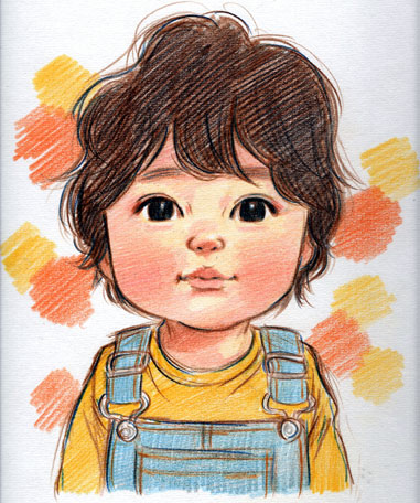 親子さん似顔絵。お子さんが最初は乗り気じゃなくて、でも話しながら書いてるうちに楽しくお話できました。