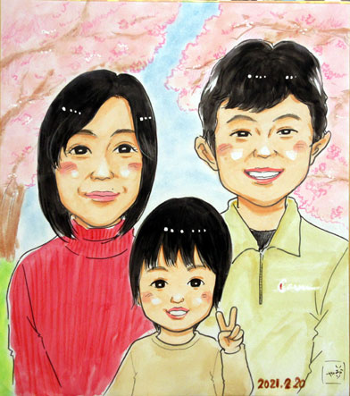 初めての家族似顔絵だそうです。これからもいろんな思い出を増やしていただきたいですね。