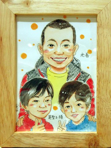 こちらは親子さんの似顔絵でした。初めての似顔絵だというお父さん、ミニ似顔絵でしたがとても喜んでくださってよかったです。