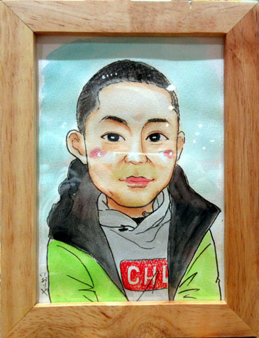 こちらは、お知り合いのお子さんへのプレゼントということでご依頼をいただきました。とってもキュートなお写真でした。お客様自身も絵を描かれていたそうで、