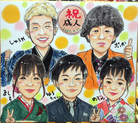 ご依頼の皆様も同級生ということで、この日のことを似顔絵にして思い出の一枚になれば嬉しいです。また節目節目にご来店をお待ちしてますね。
